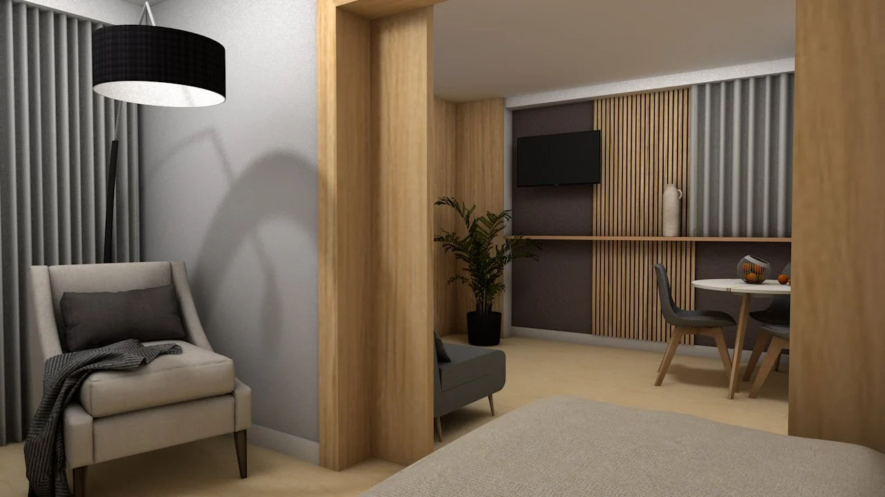 Projet de studio #6 - Orange (84) Objectif : Studio chic et élégant pour un confort optimisé.